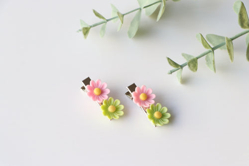 Pink and Green Flower Clips