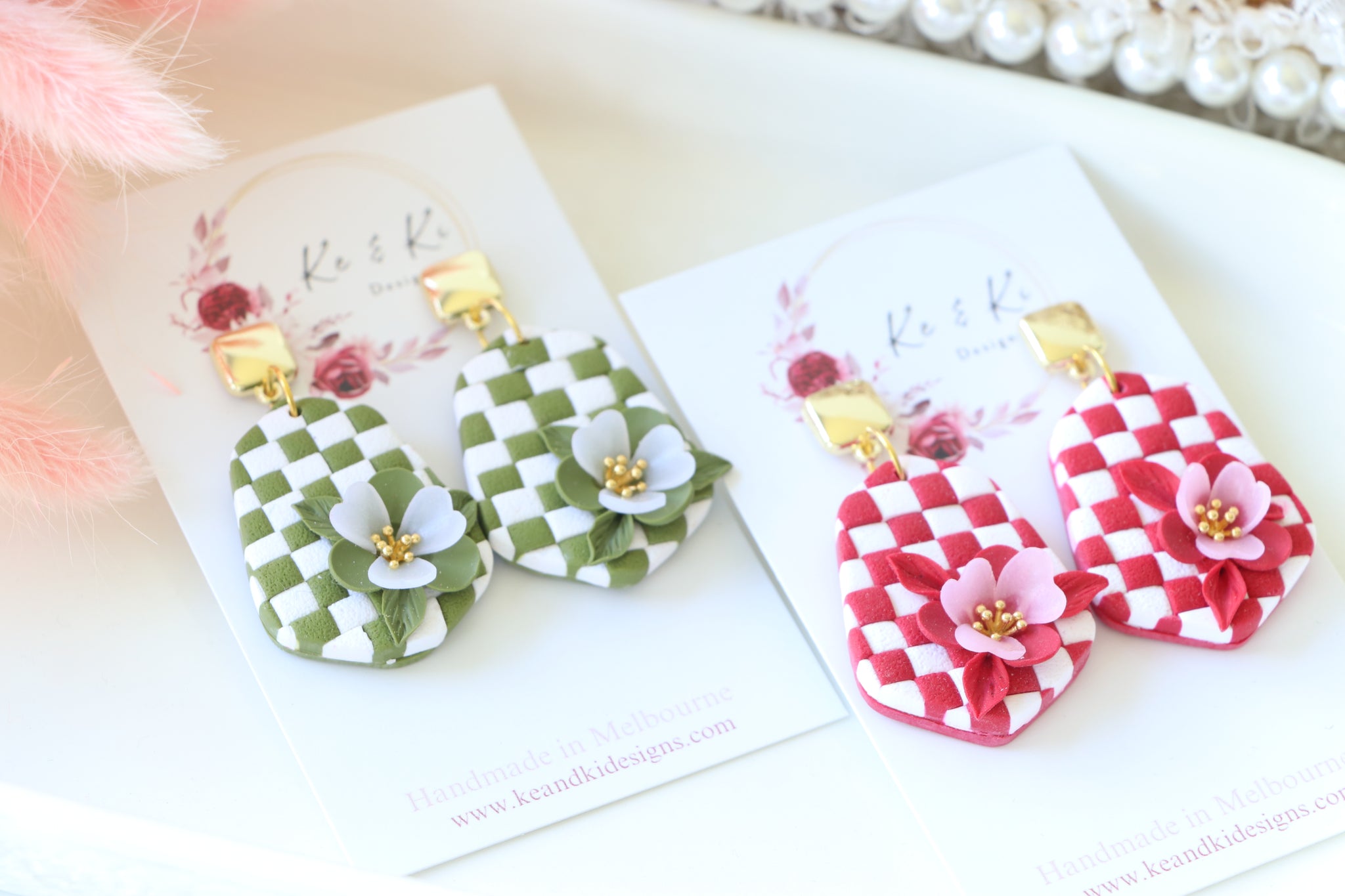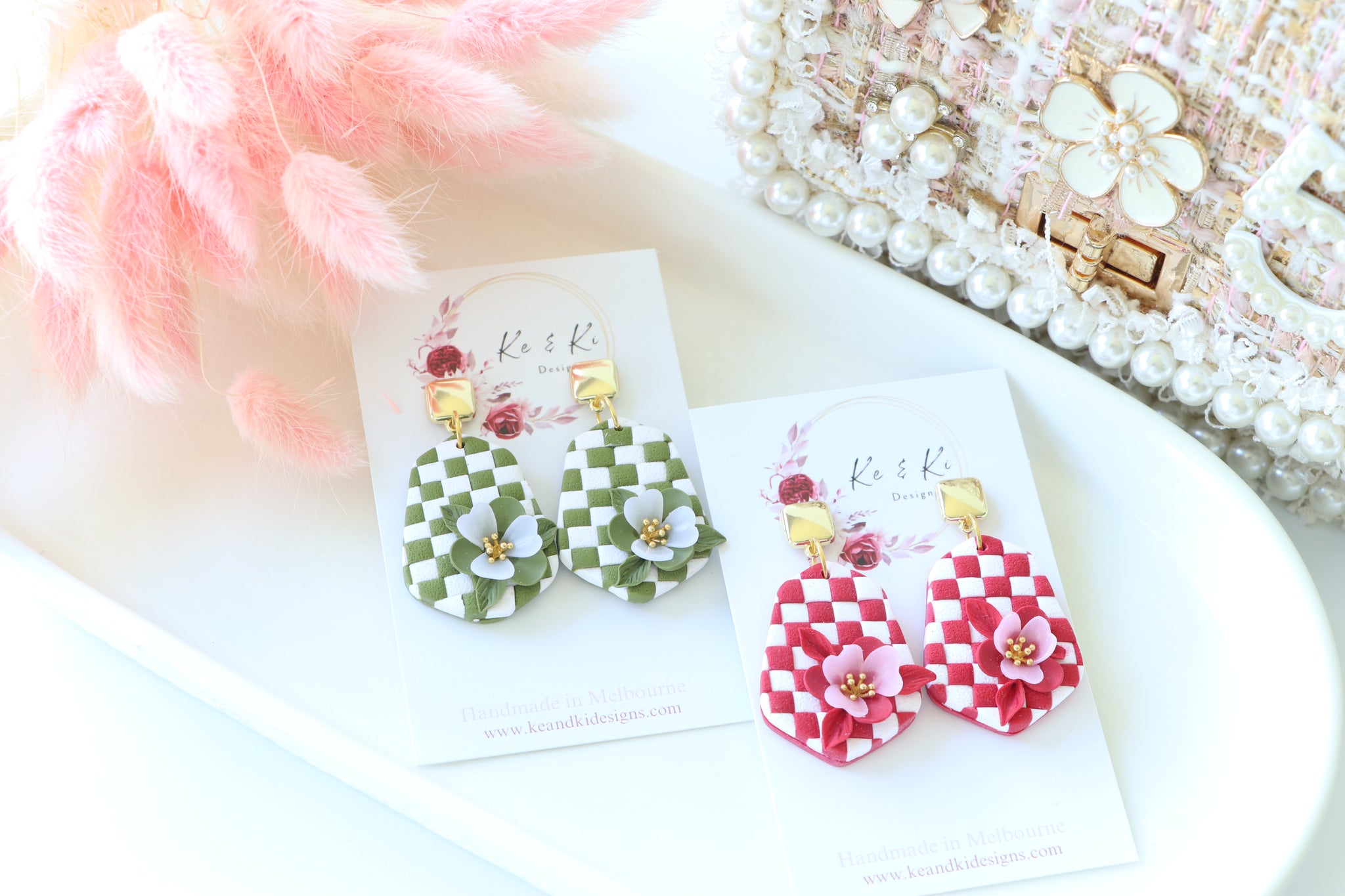 Step up your accessory game and make a statement with these checkered floral earrings that perfectly blend charm and style.