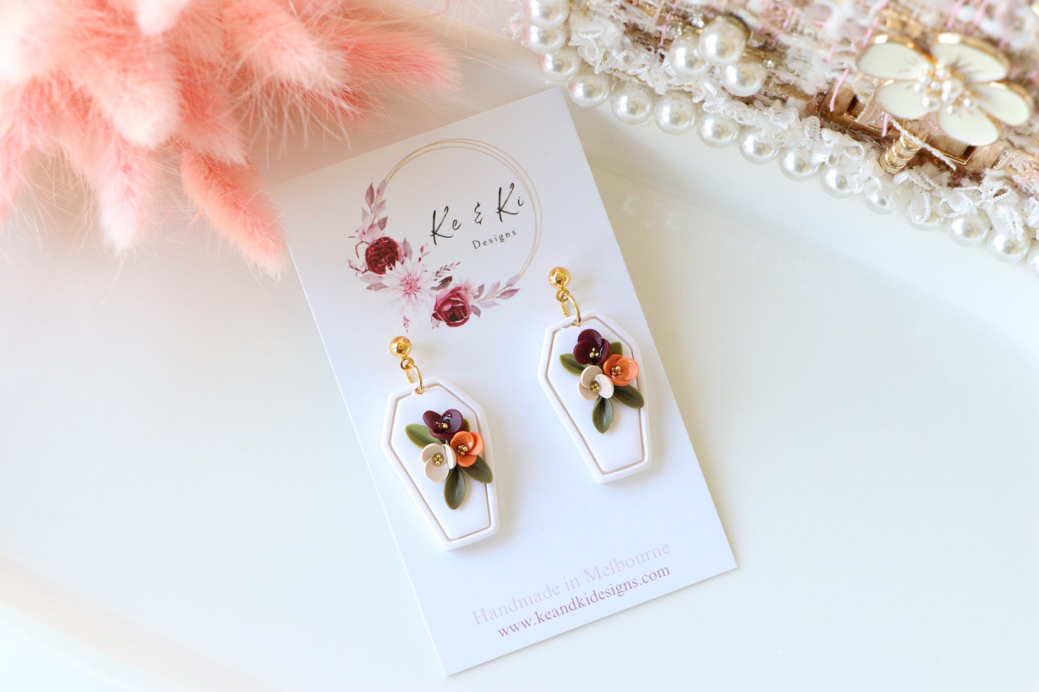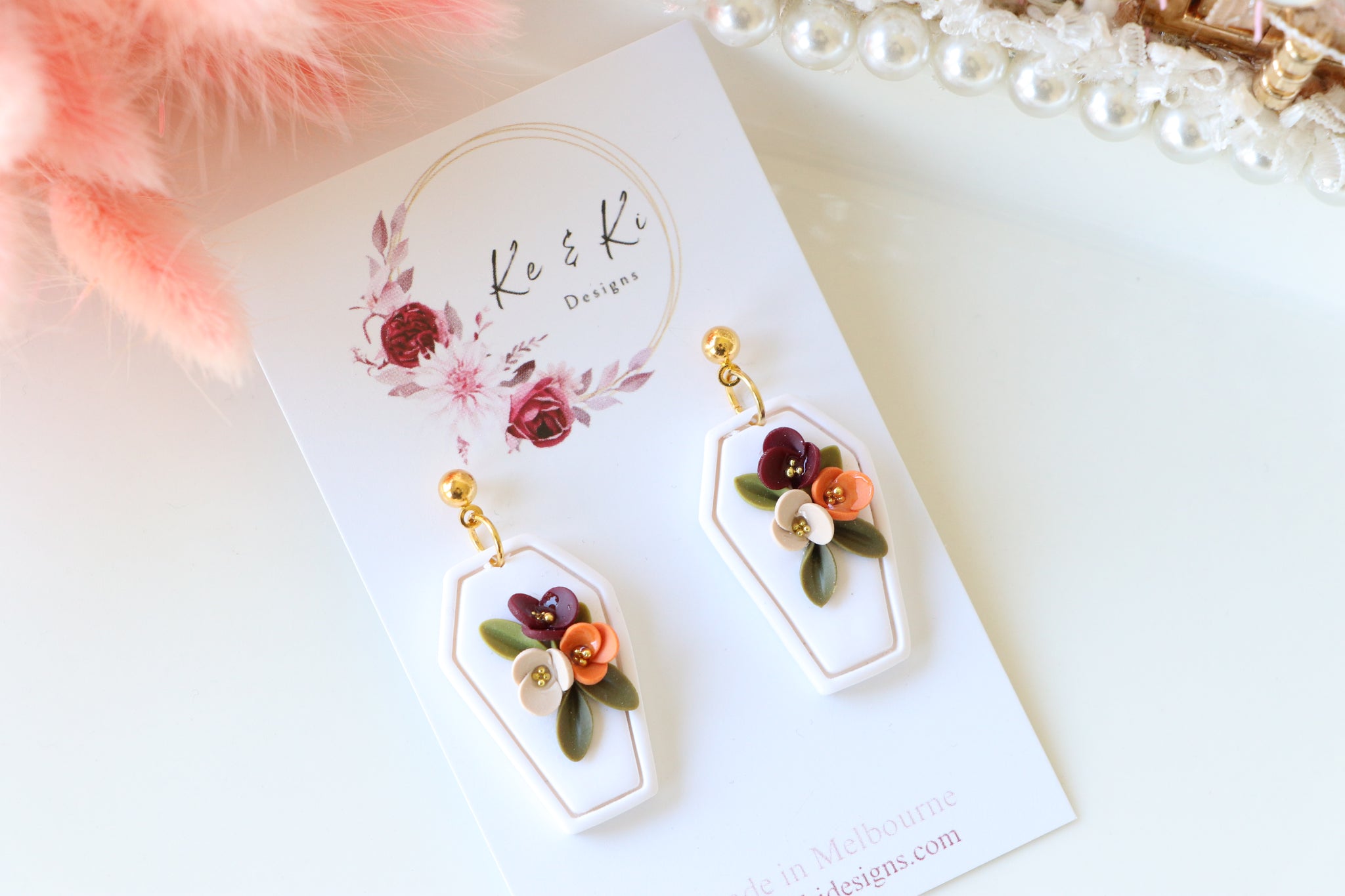 Dare to be beautifully bold this Halloween with our Coffin Floral Polymer Clay Earrings, a stunning blend of dark romance and handcrafted artistry. Designed and handmade by KeandKi Designs, these gothic floral earrings celebrate the beauty in the mysterious — perfect for those who love spooky, elegant jewelry.