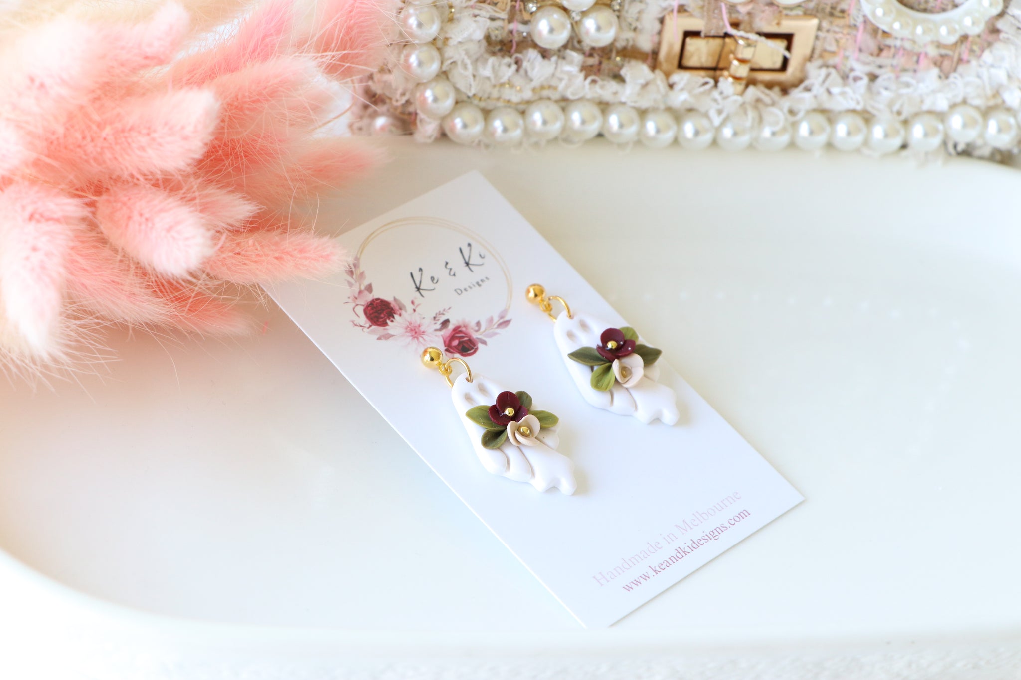 Sweet, spooky, and handcrafted with love — our Floral Ghost Polymer Clay Earrings are where Halloween meets soft romance. Designed by KeandKi Designs, these handmade ghost earrings feature tiny floral details that make them beautifully unique, offering the perfect spooky cute aesthetic for the season.