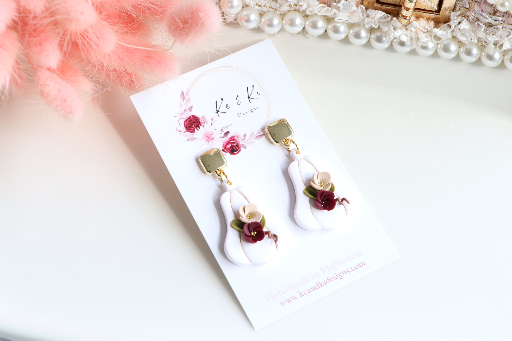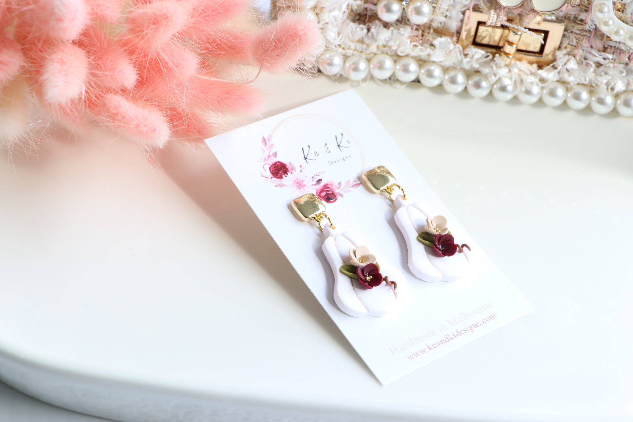 Celebrate the beauty of fall with our Pumpkin Floral Polymer Clay Earrings, handcrafted with love by KeandKi Designs. These floral pumpkin earrings blend cozy autumn tones with delicate floral details, capturing the perfect balance between spooky charm and soft feminine elegance.