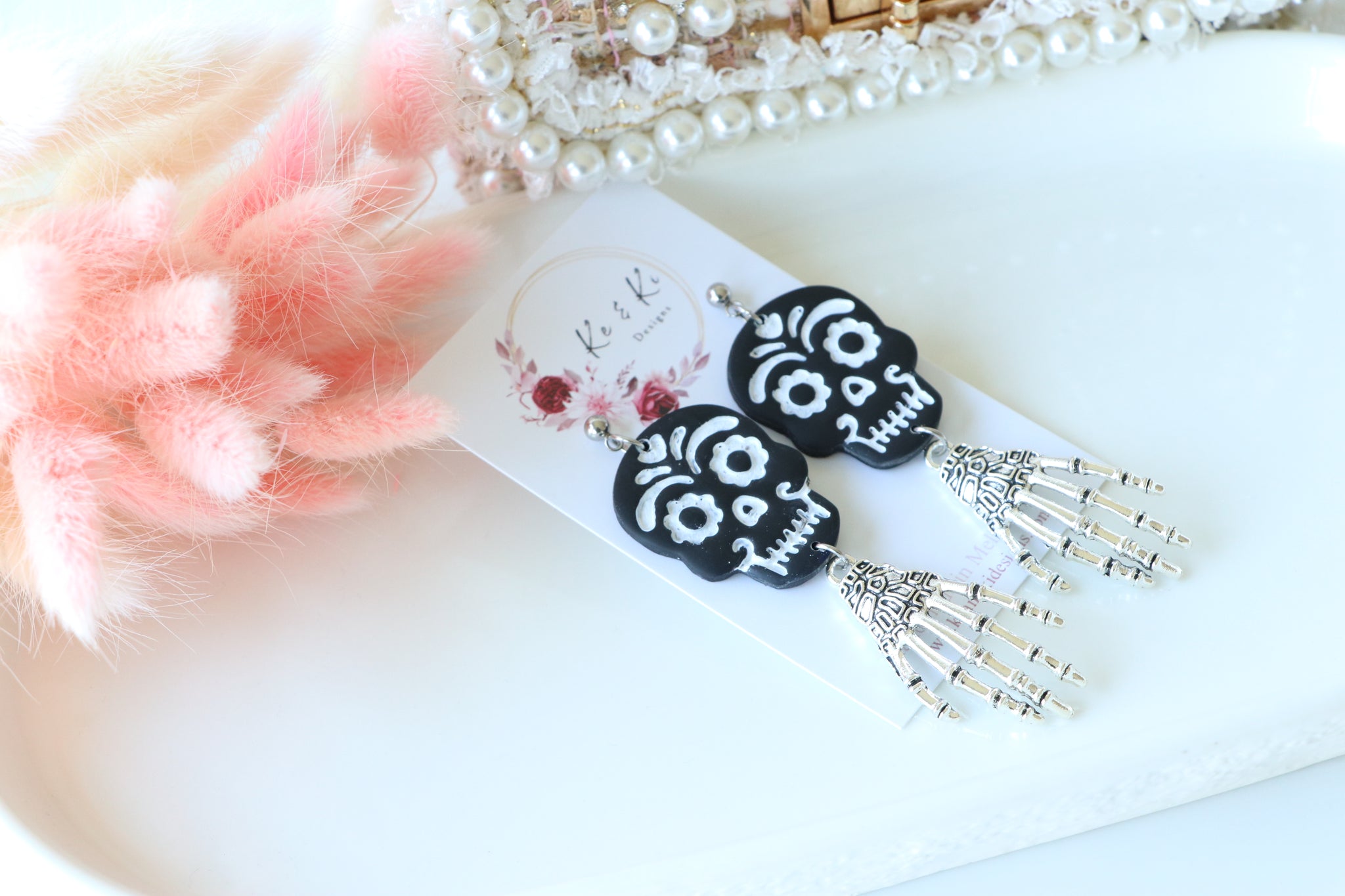 Turn heads this spooky season with our Skull Polymer Clay Earrings, handmade with precision and heart by KeandKi Designs. These gothic yet feminine skull earrings are the perfect blend of spooky, stylish, and statement-worthy, designed for those who love Halloween jewelry with a delicate handmade touch.